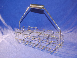 Unsere Tragekörbe haben 10 runde Stellplätze für alle gängigen Gläser. Für eine edle Optik ist die Oberfläche komplett verchromt.